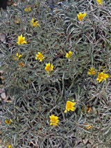 Very flat mat forming ground cover with silvery leaves. Nestled in the foliage are yellow daisy flowers through the summer. Very hardy once established, good for low traffic areas, between stepping stones. Plant in a weed free site for best results.